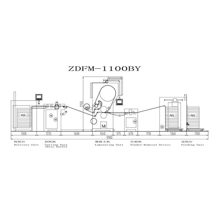 สิ่งพิมพ์จะถูกลำเลียงไปยังตำแหน่งที่ระบุด้านหน้าโดยสายพานลำเลียงกระดาษ จากนั้นป้อนเข้า ฟิล์มจะถูกป้อนเข้าด้วยอุปกรณ์ป้อน เคลือบด้วยกาวและทำให้แห้ง กระดาษและฟิล์มได้รับแรงดันโดยลูกกลิ้งทำความร้อนแม่เหล็กไฟฟ้าและลูกกลิ้งอัดยางแล้วจึงเคลือบ ตัดส่วนที่ทับซ้อนกันของกระดาษโดยใช้ใบมีดหรือล้อกระดาษทราย และแยกกระดาษด้วยลูกกลิ้งดึงกระดาษ จากนั้นผลิตภัณฑ์สำเร็จรูปที่แยกออกมาจะถูกส่งไปยังระบบรับและเรียงกระดาษอัตโนมัติในสายพานลำเลียงเพื่อรวบรวมผลิตภัณฑ์สำเร็จรูปชิ้นเดียว