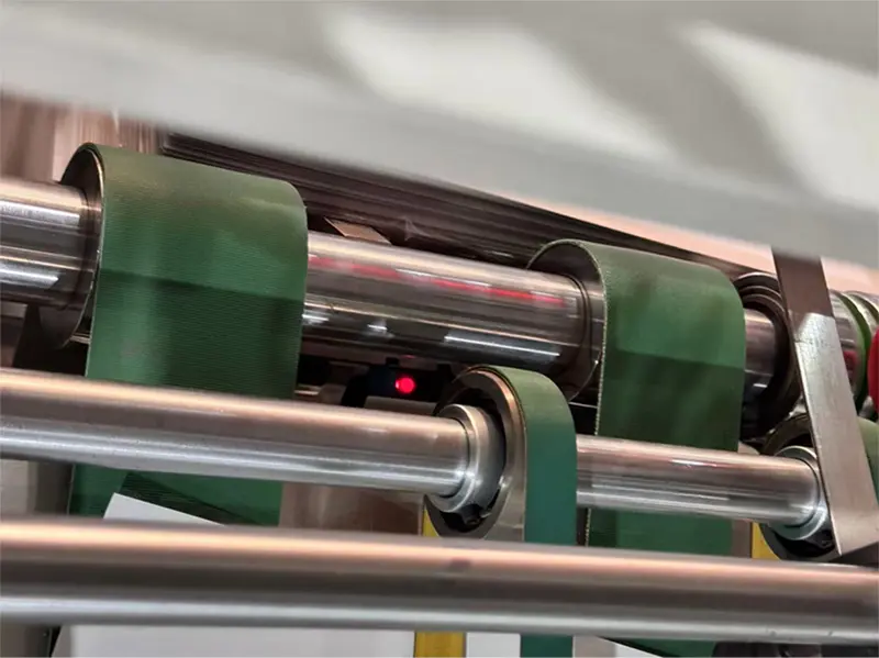 ตาไฟฟ้าเหนี่ยวนำ ตรวจจับความยาวของกระดาษ หากความยาวของกระดาษเปลี่ยนแปลง สายพานจะเร่งความเร็ว และเครื่องกั้นของเครื่องดึงขึ้นจะพลิกคว่ำและเตะกระดาษออกมา